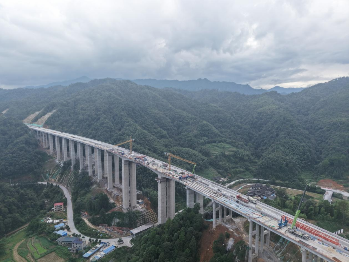 近日,随着刀背冲大桥最后一块梁板平稳架设完成,G7221衡南高速城步至龙胜(湘桂界)段实现全线贯通,为今年年底建成通车奠定坚实基础。